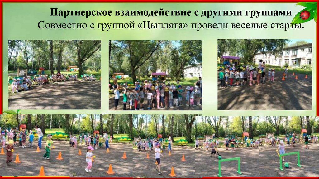Партнерское взаимодействие с другими группамиСовместно с группой «Цыплята» провели веселые старты.