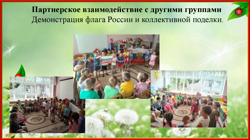 Партнерское взаимодействие с другими группамиДемонстрация флага России и коллективной поделки.
