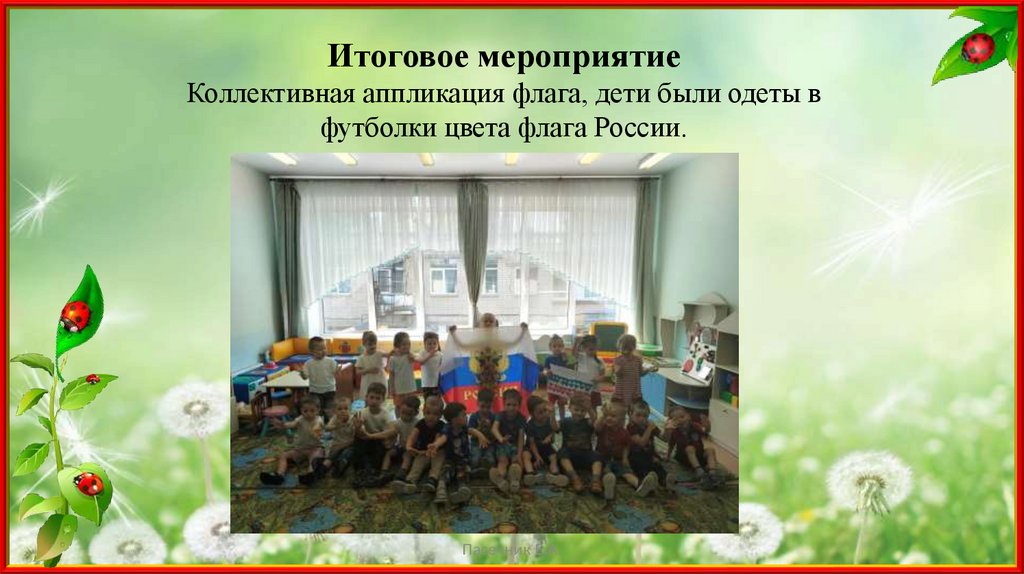 Итоговое мероприятиеКоллективная аппликация флага, дети были одеты в