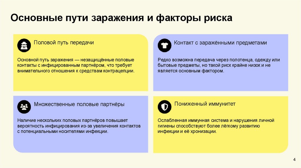 Основные пути заражения и факторы рискаПоловой путь передачи