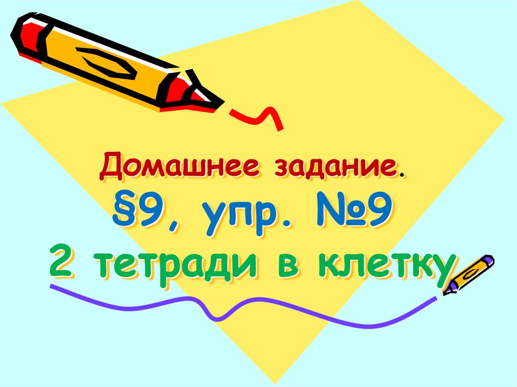 1. Домашнее задание. §9, упр. №9 2 тетради в клетку