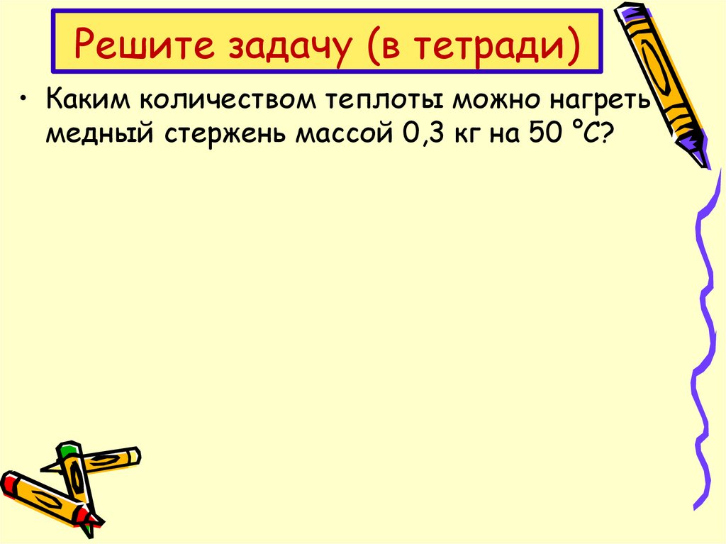 Решите задачу (в тетради)• Каким количеством теплоты можно нагреть
