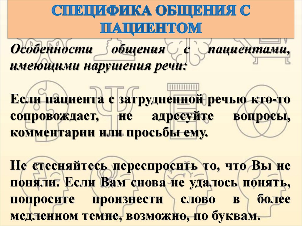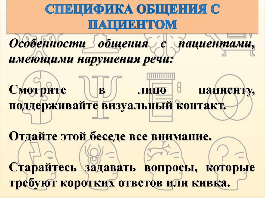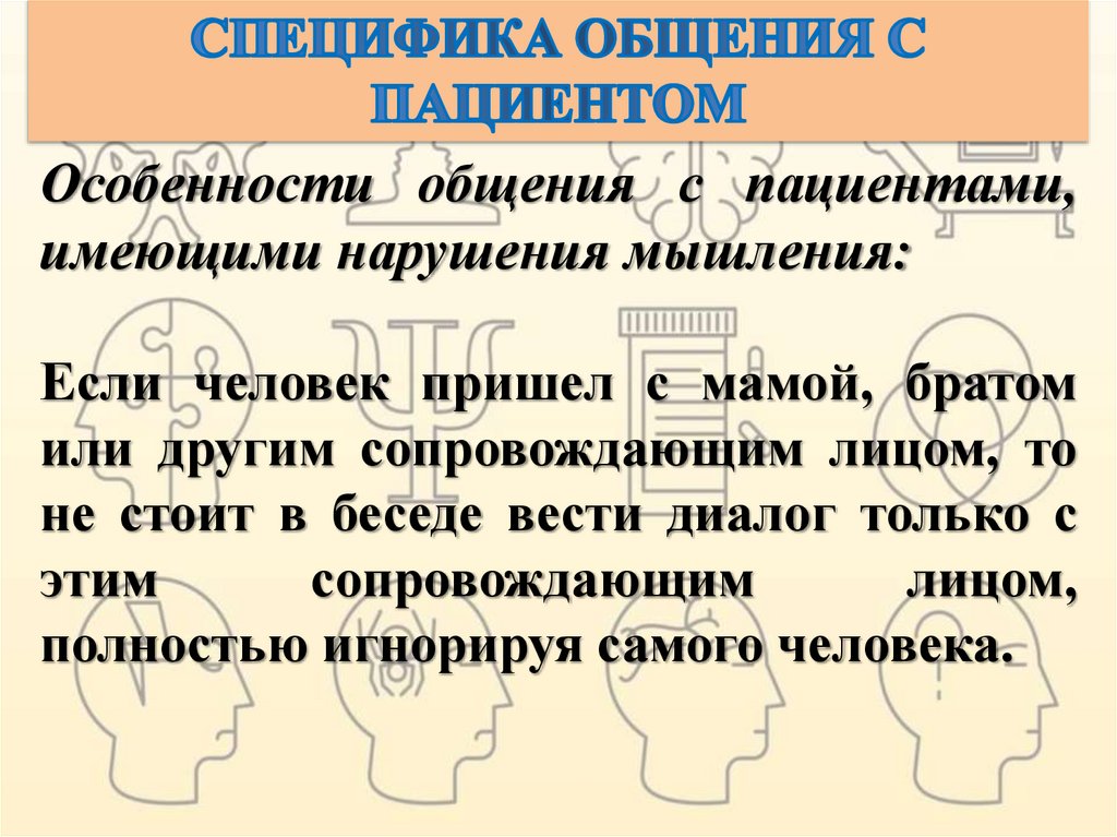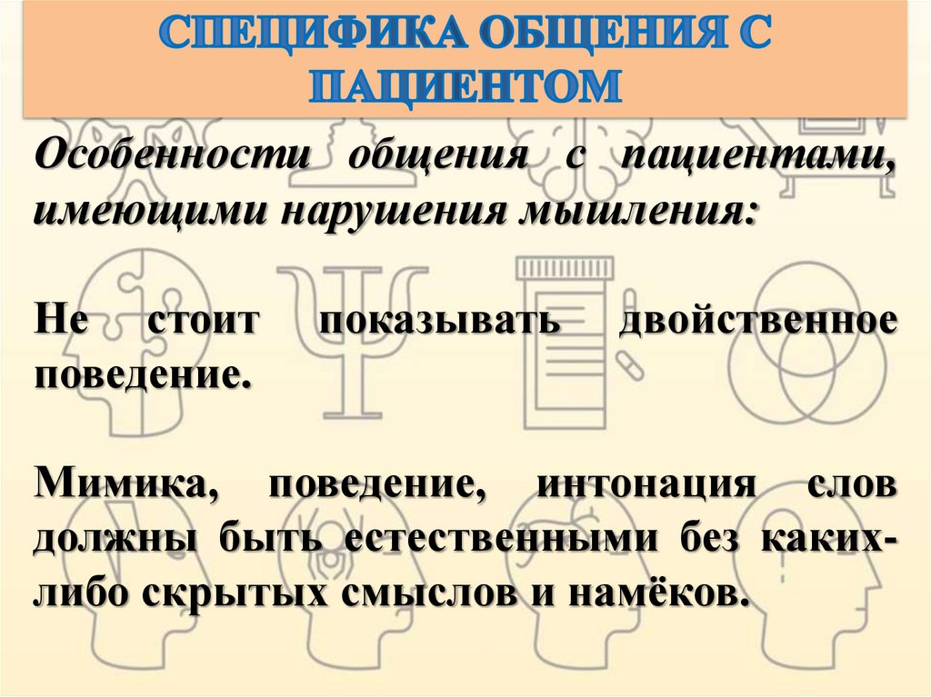 Особенности общения с пациентами,имеющими нарушения мышления: