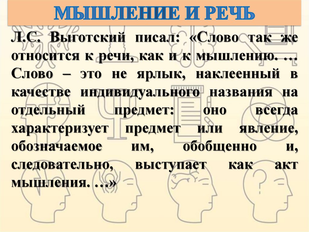Л.С. Выготский писал: «Слово так жеотносится к речи, как и к мышлению. …