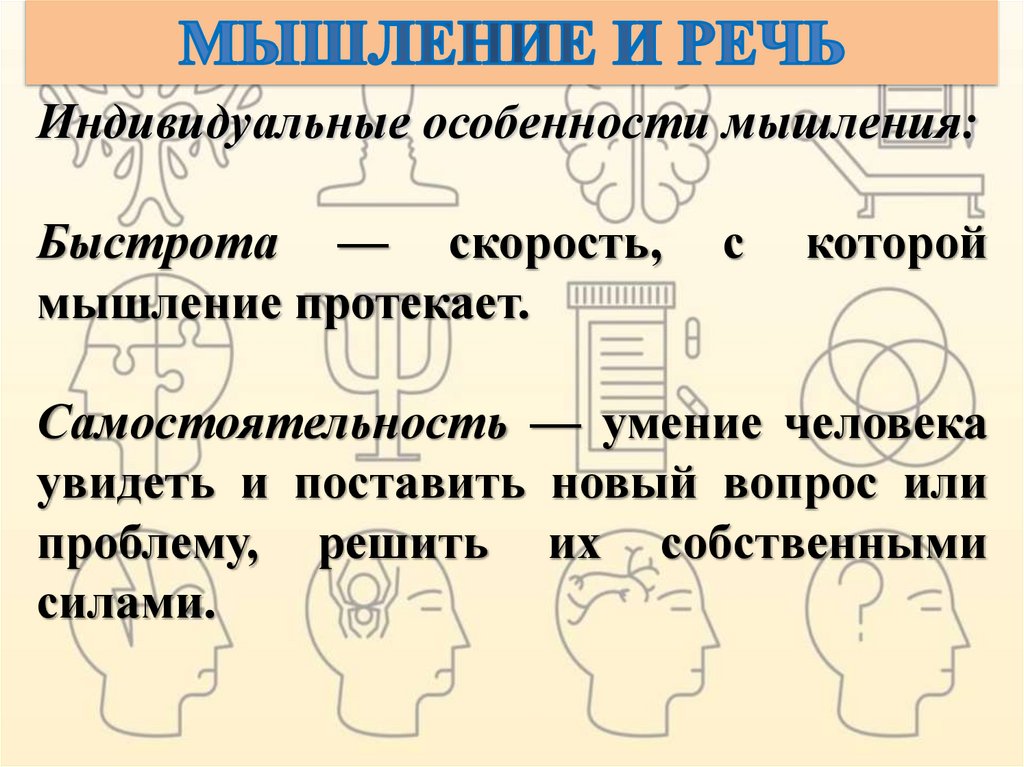 Индивидуальные особенности мышления:Быстрота — скорость,