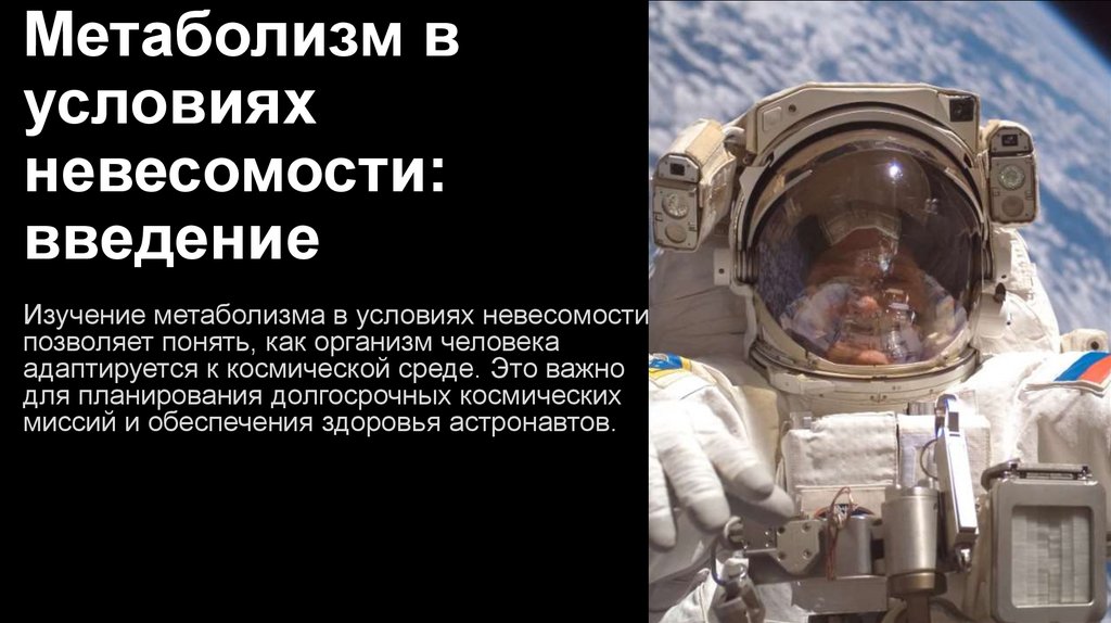 1.Изменение метаболизма в космосеНа орбите организм работает иначе, что влияет на обмен