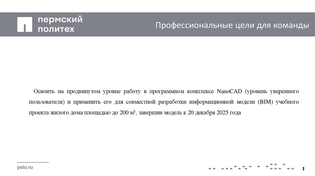 Профессиональные цели для командыОсвоить на продвинутом уровне работу в программном комплексе NanoCAD (уровень уверенного