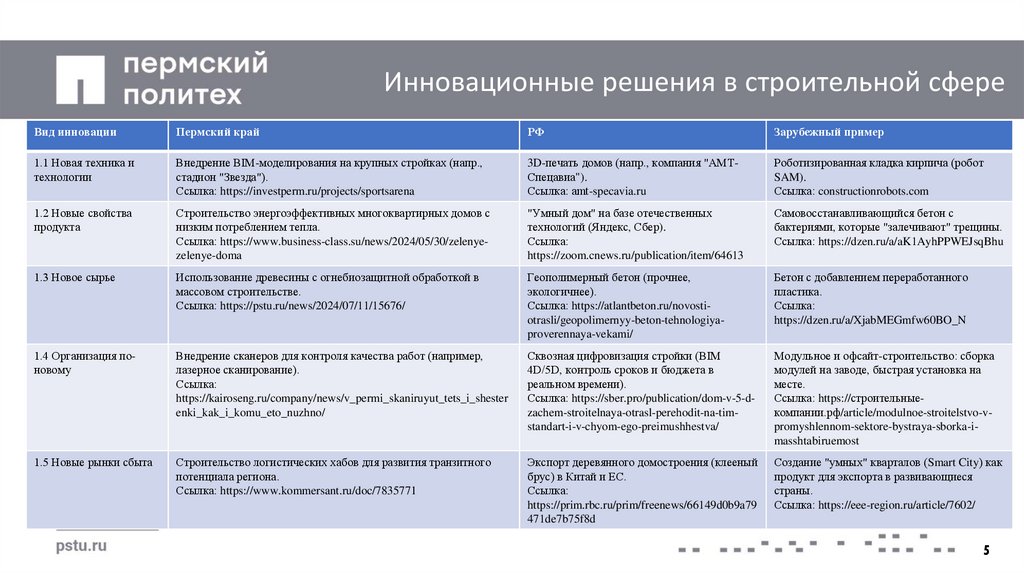Инновационные решения в строительной сфереВид инновации