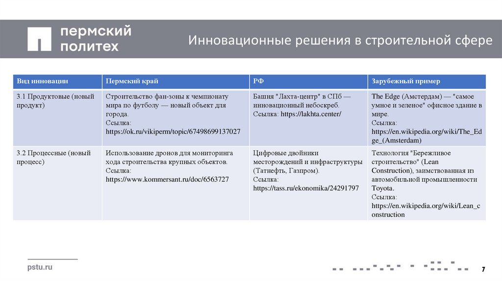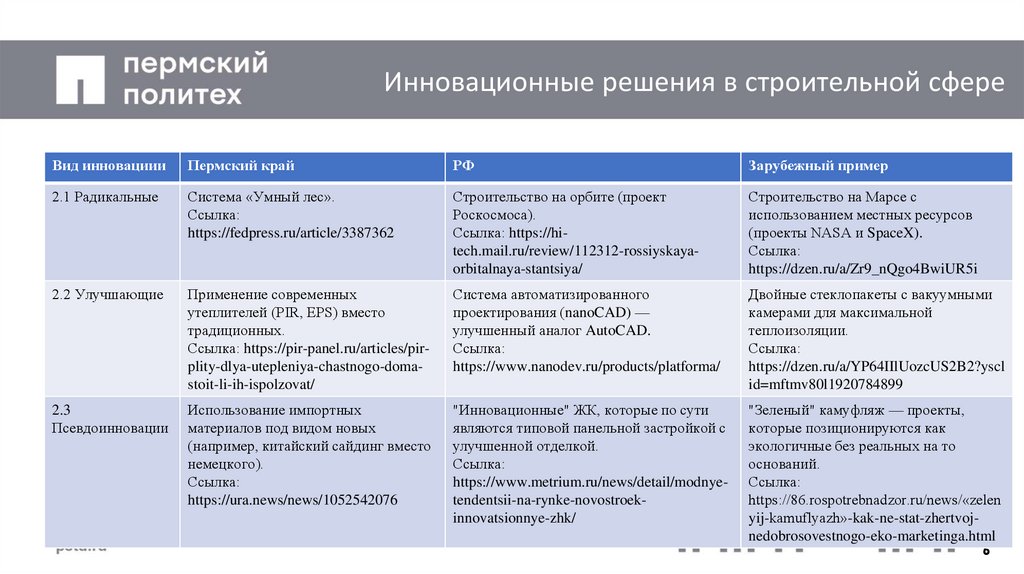 Инновационные решения в строительной сфереВид инновациии
