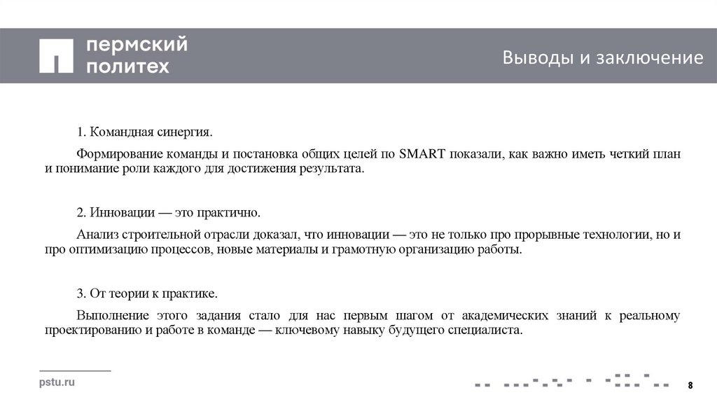 Выводы и заключение1. Командная синергия.