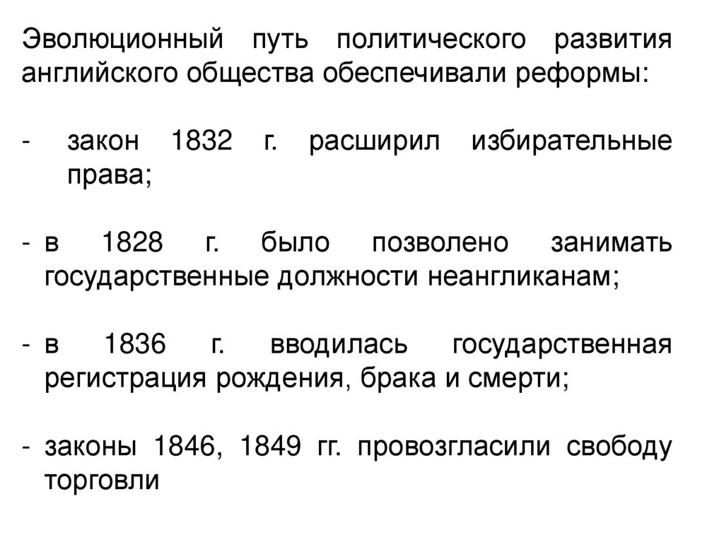 Эволюционный путь политического развитияанглийского общества обеспечивали реформы: