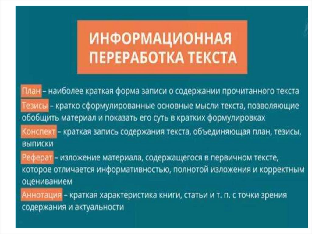 1.Изучить информацию в презентации о видахинформации и составлении тезисного плана.