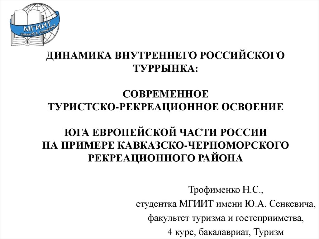 туристской отрасли в КавказскоЧерноморском рекреационном