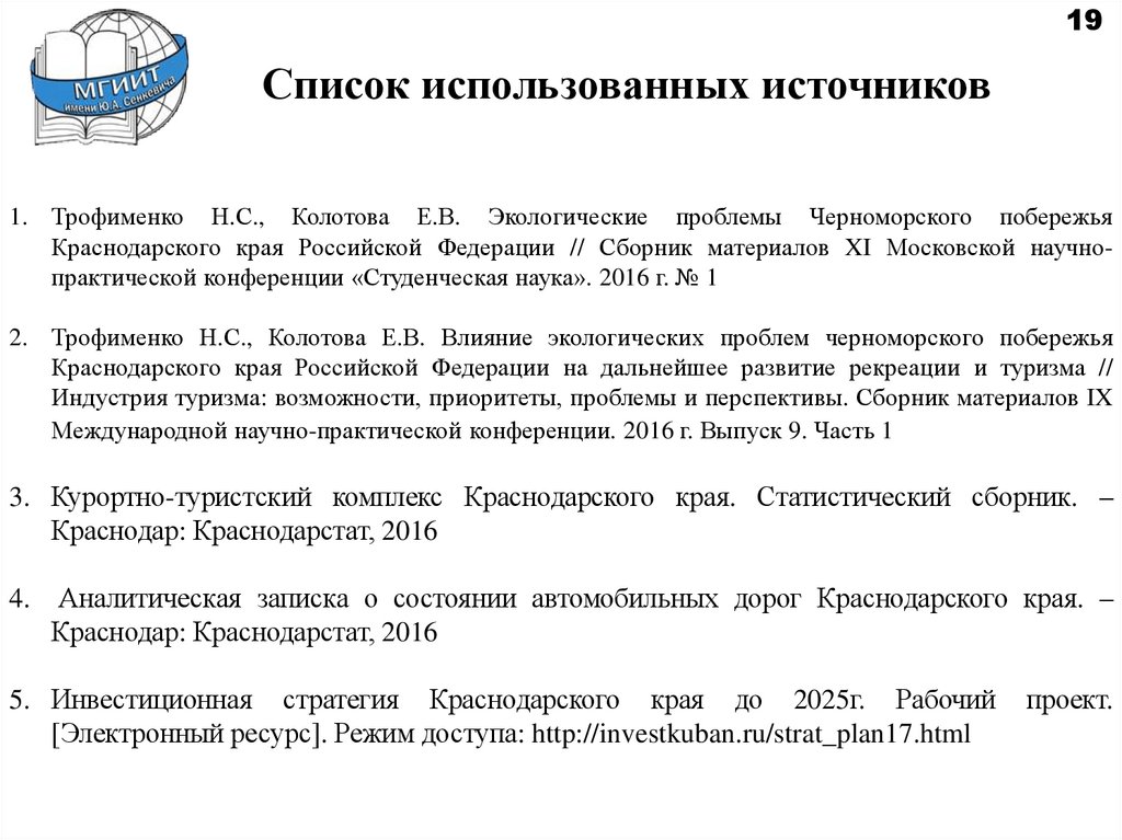 1. Трофименко Н.С., Колотова Е.В. Экологические проблемы Черноморского побережья