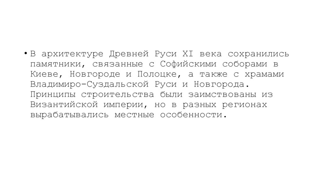 • В архитектуре Древней Руси XI века сохранилисьпамятники, связанные с Софийскими соборами в