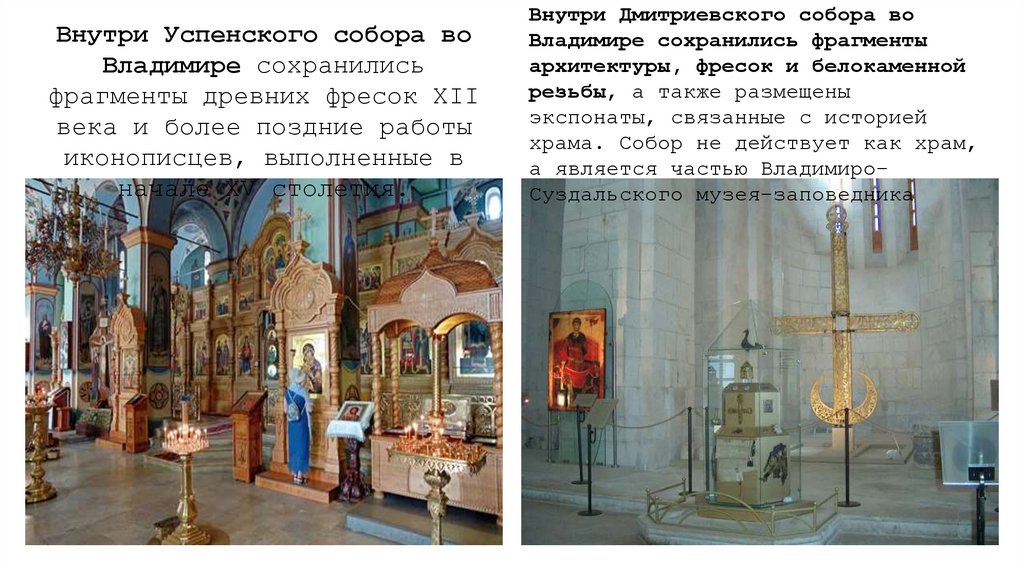 Внутри Успенского собора воВладимире сохранились