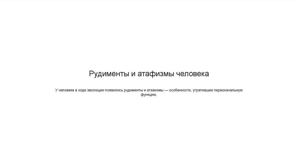 Рудименты и атафизмы человекаУ человека в ходе эволюции появились рудименты и атавизмы — особенности, утратившие первоначальную