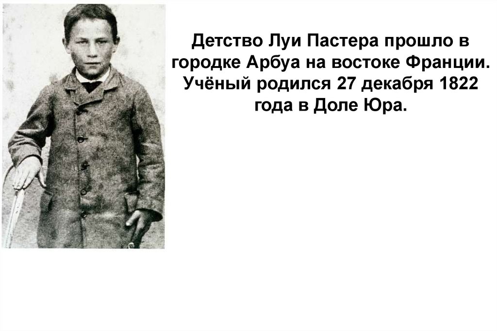 Детство Луи Пастера прошло вгородке Арбуа на востоке Франции.