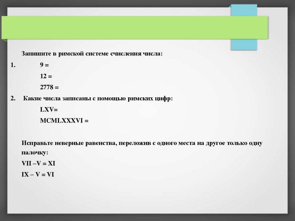 До нас дошла римская система записи чиселПрименяется более 2500 лет.