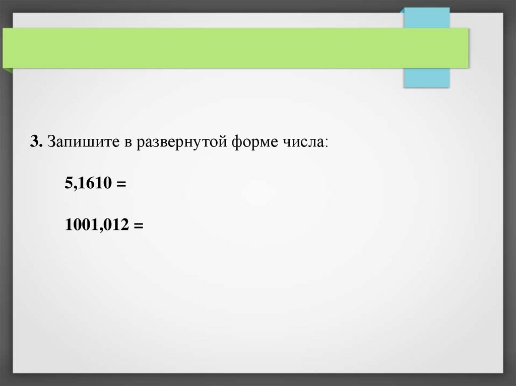 Развернутая форма: 101 =1*22 +0*21+1*20