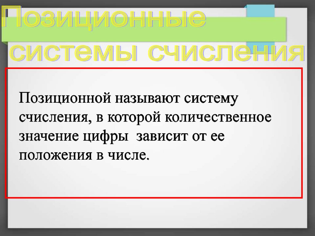 Количество используемых цифр называется основанием позиционной системысчисления.