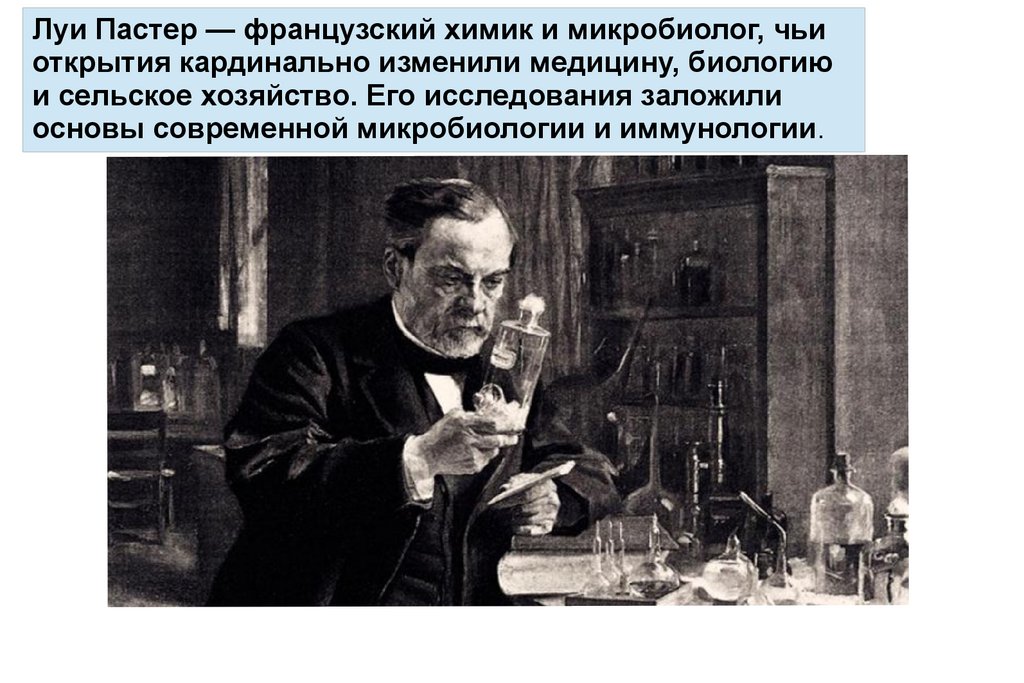 Луи Пастер — французский химик и микробиолог, чьиоткрытия кардинально изменили медицину, биологию