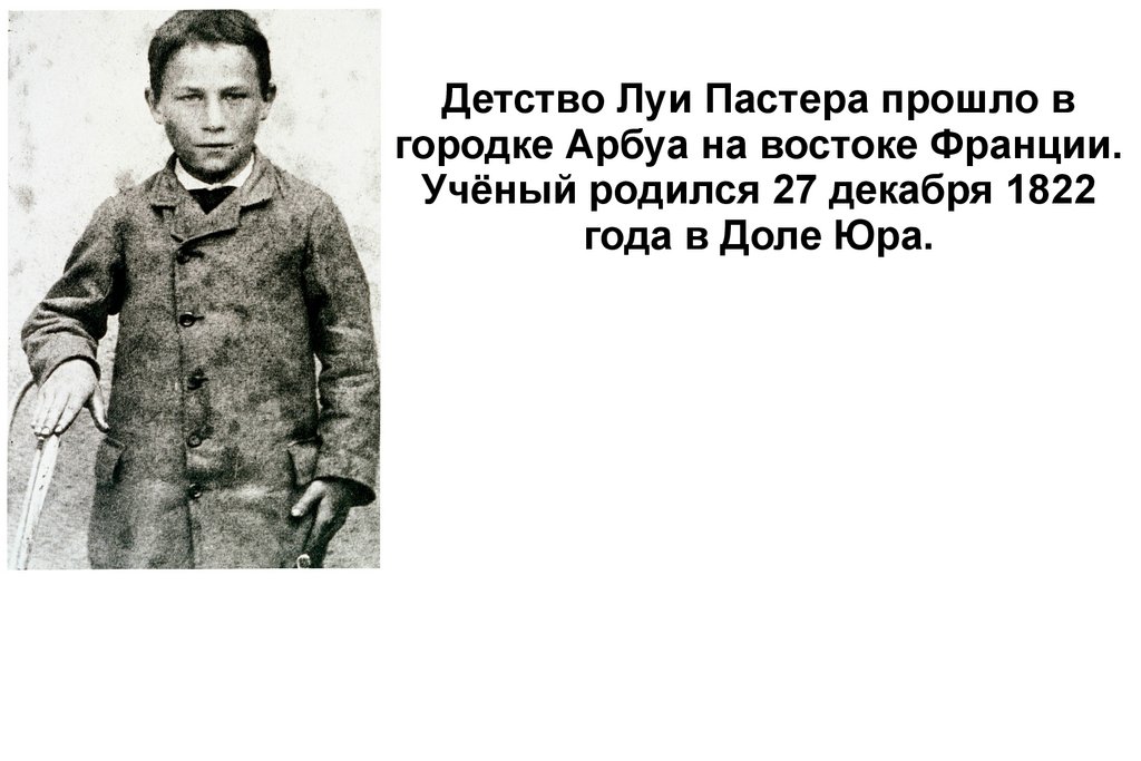 Детство Луи Пастера прошло вгородке Арбуа на востоке Франции.