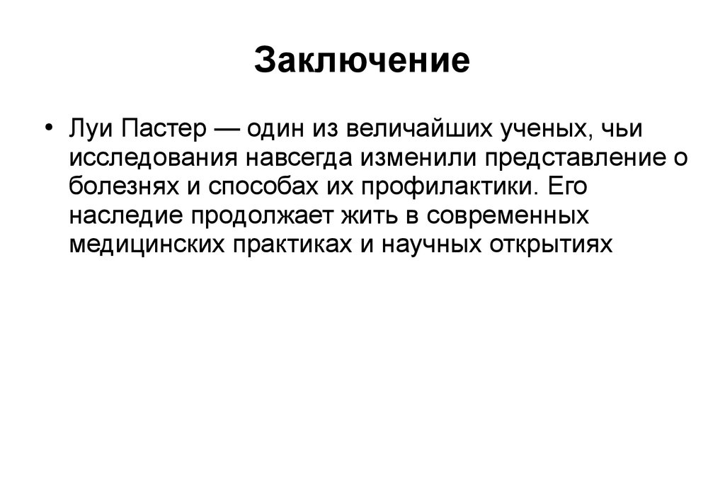 ЗаключениеЛуи Пастер — один из величайших ученых, чьи