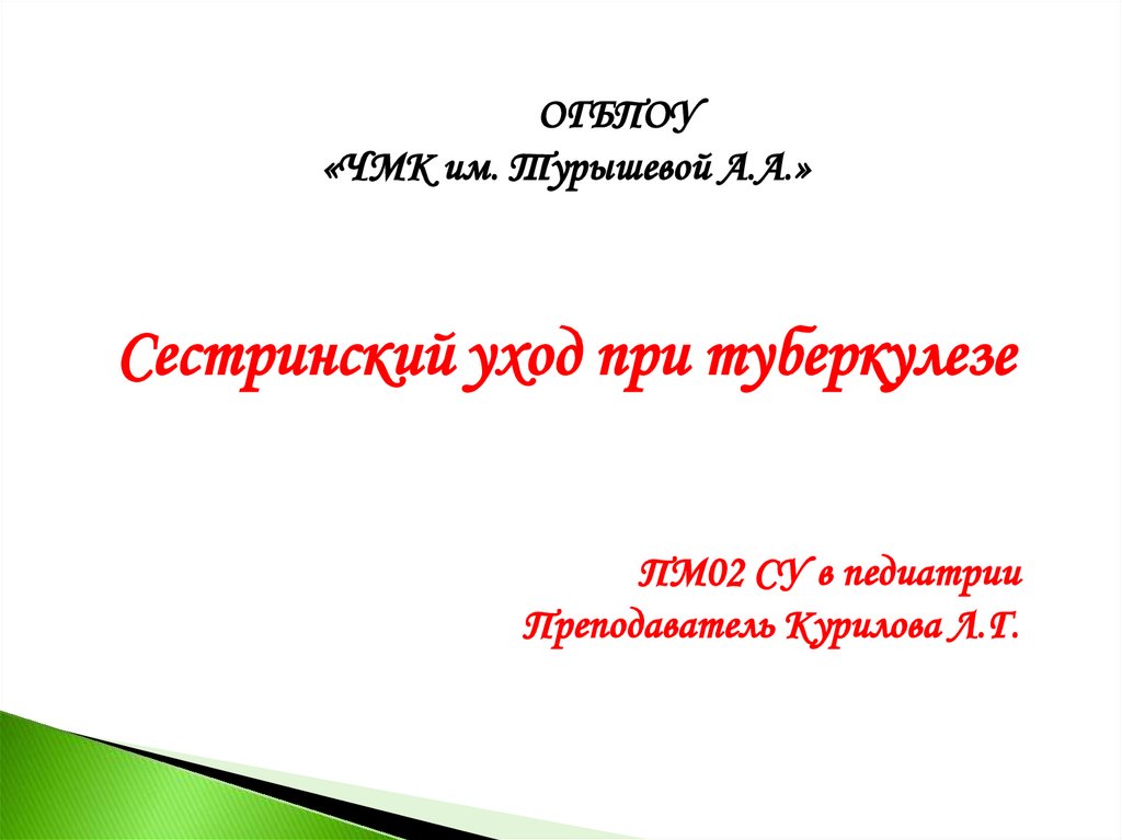 Сестринский уход при туберкулезе