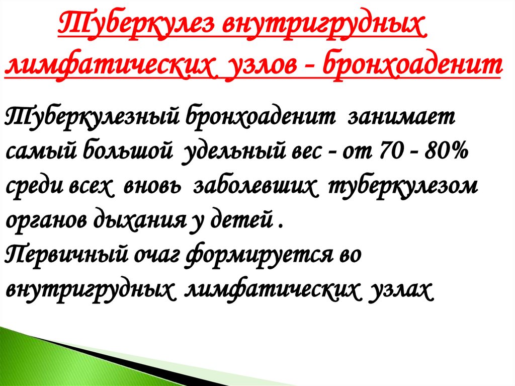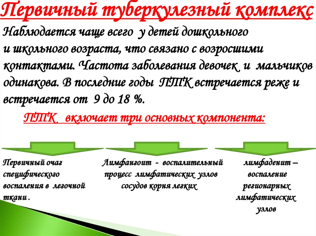 Первичный туберкулезный комплексНаблюдается чаще всего у детей дошкольного