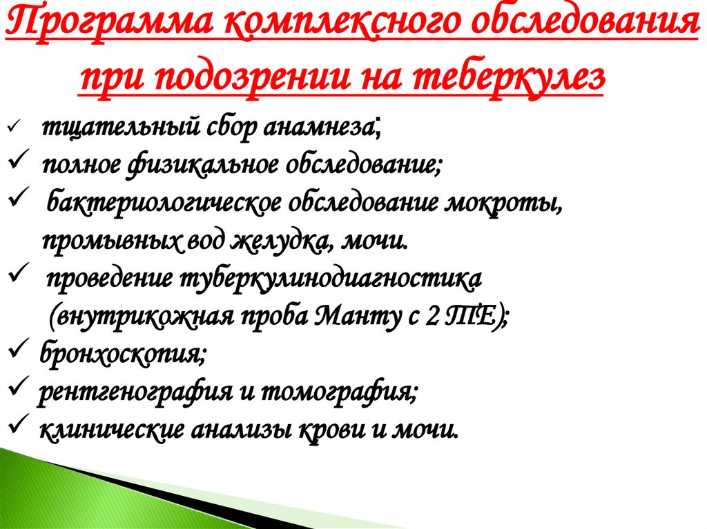 Программа комплексного обследованияпри подозрении на теберкулез