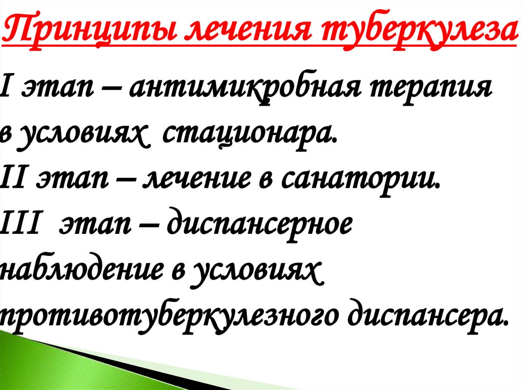 Принципы лечения туберкулезаI этап – антимикробная терапия