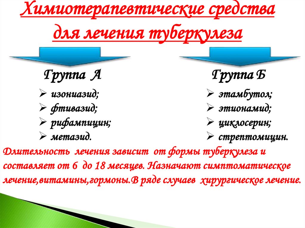 Длительность лечения зависит от формы туберкулеза и