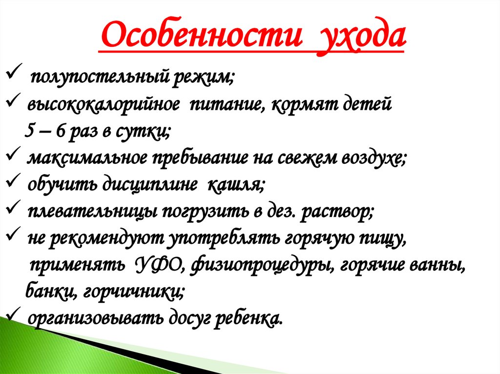 Особенности уходаполупостельный режим;