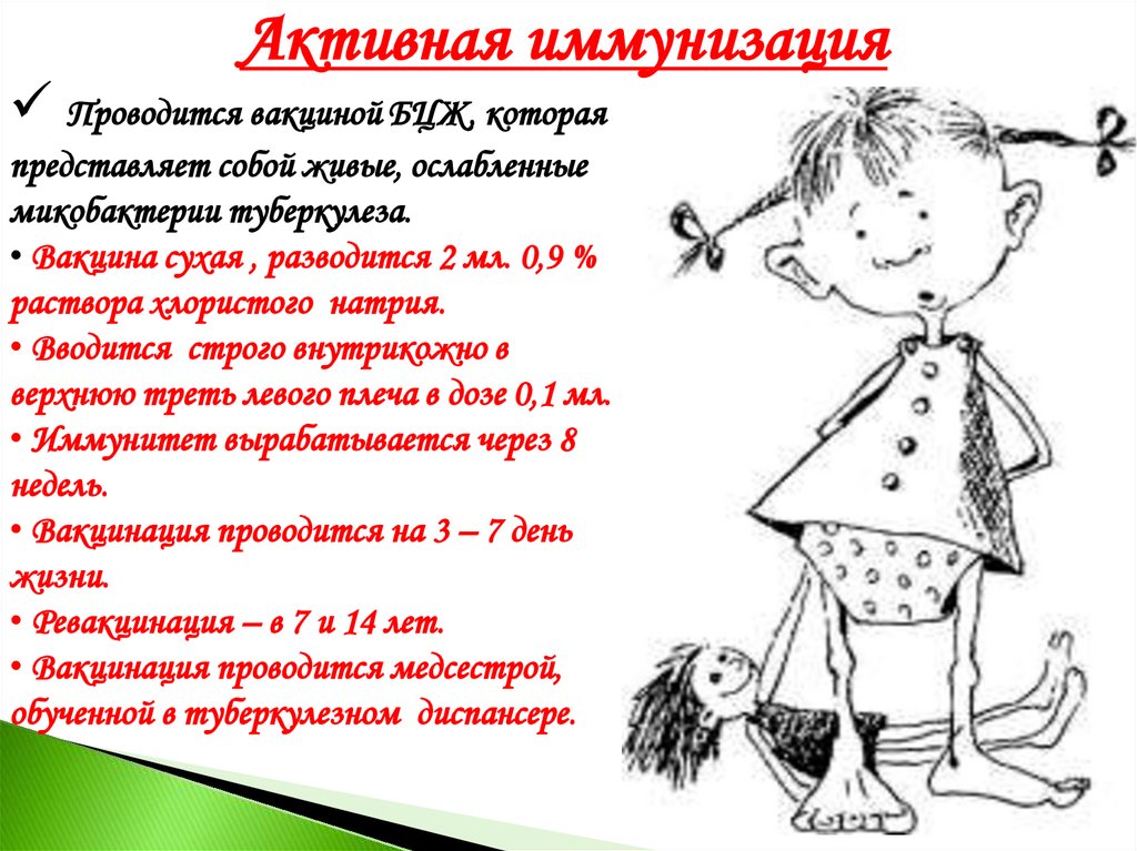 Активная иммунизацияПроводится вакциной БЦЖ, которая