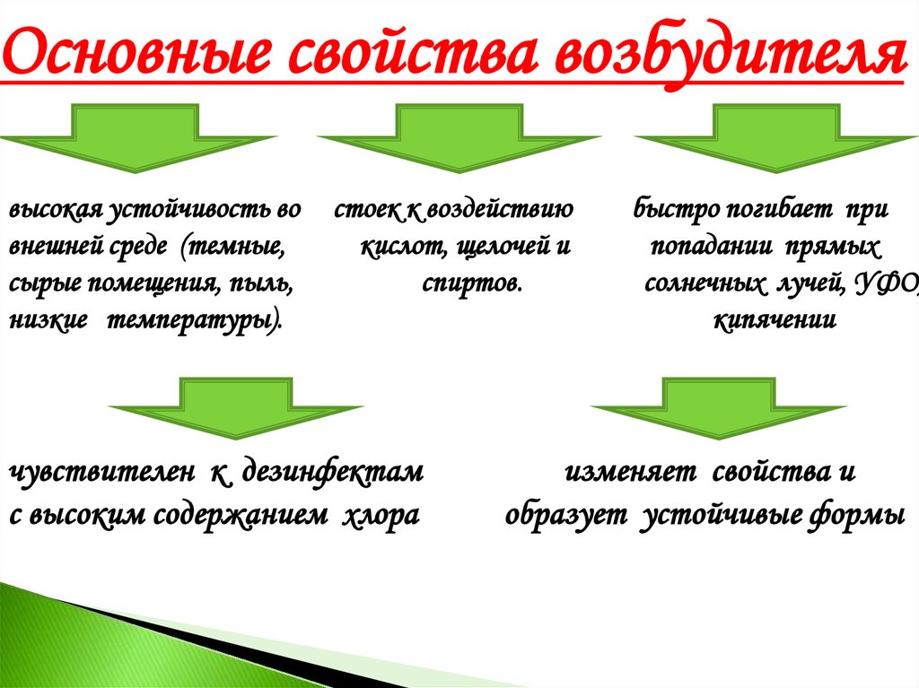 Основные свойства возбудителявысокая устойчивость во