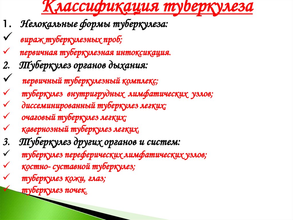 Классификация туберкулеза1. Нелокальные формы туберкулеза: