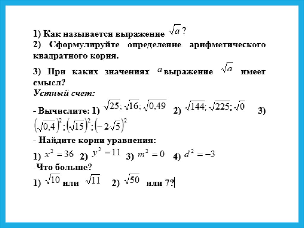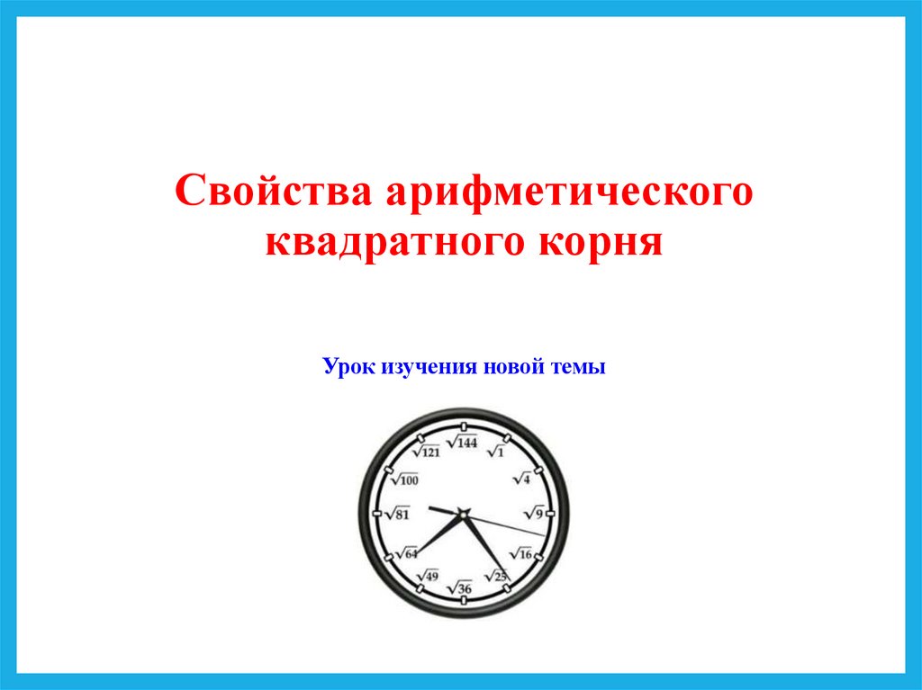 1. Свойства арифметического квадратного корня Урок изучения новой темы