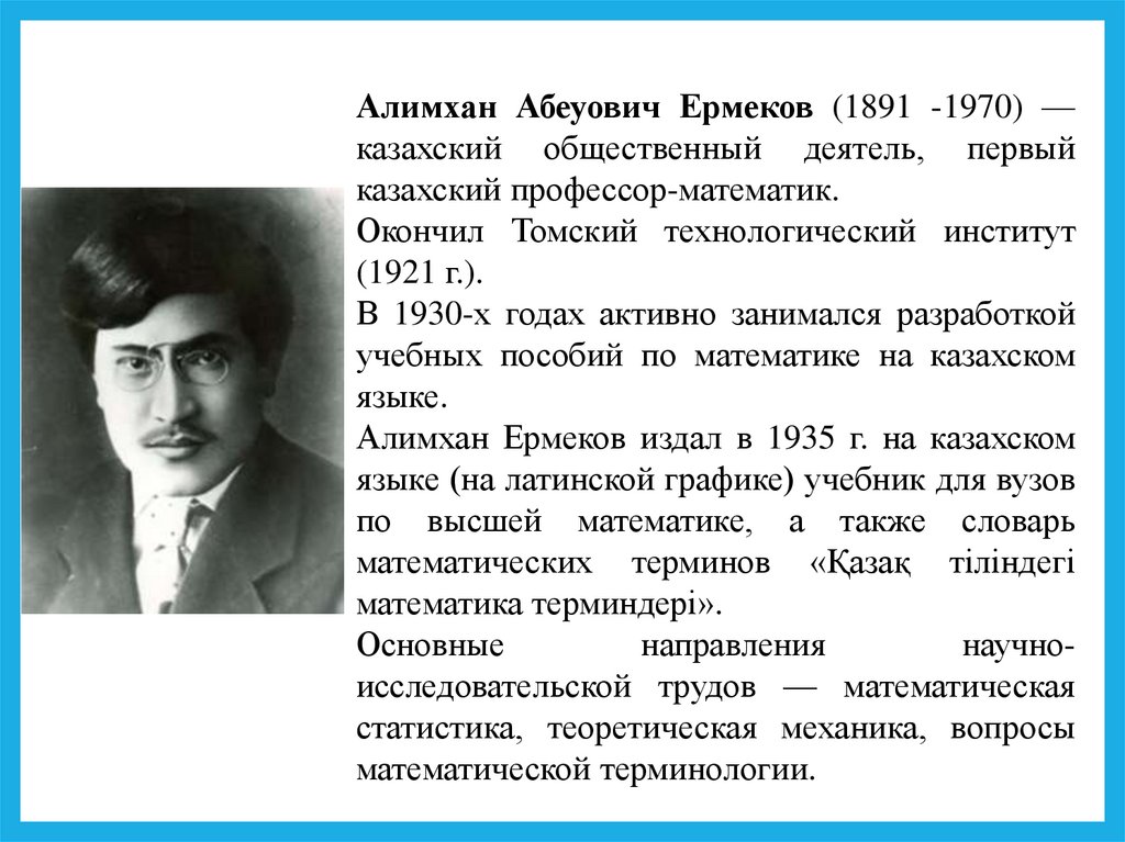 Алимхан Абеуович Ермеков (1891 -1970) —казахский общественный деятель, первый