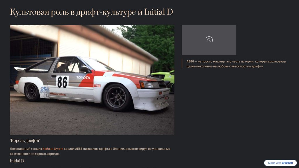 Культовая роль в дрифт-культуре и Initial DAE86 — не просто машина, это часть истории, которая вдохновила