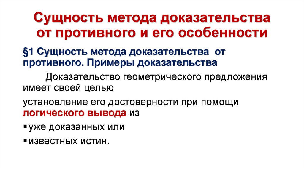 §1 Сущность метода доказательства отпротивного. Примеры доказательства