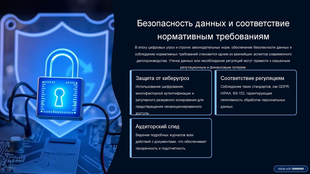 делопроизводства. Утечка данных или несоблюдение регуляций могут привести к серьезным