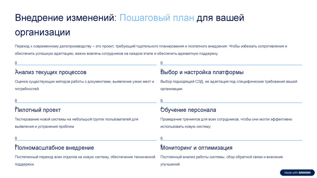 Переход к современному делопроизводству – это проект, требующий тщательного планирования и поэтапного внедрения. Чтобы избежать сопротивления и