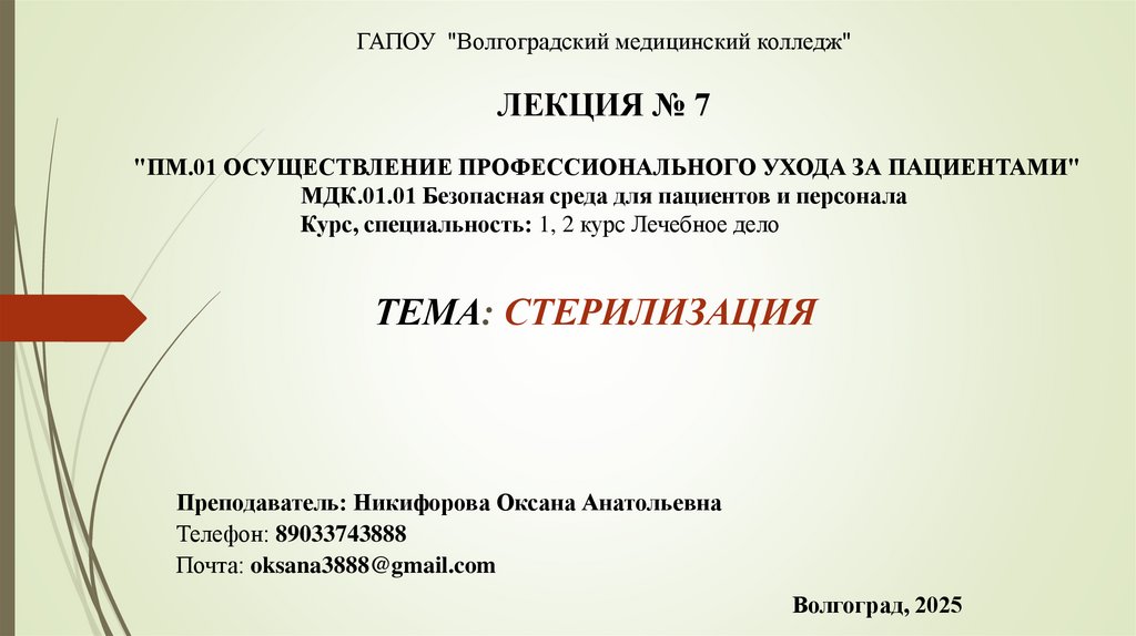 ГАПОУ "Волгоградский медицинский колледж"ЛЕКЦИЯ № 7
