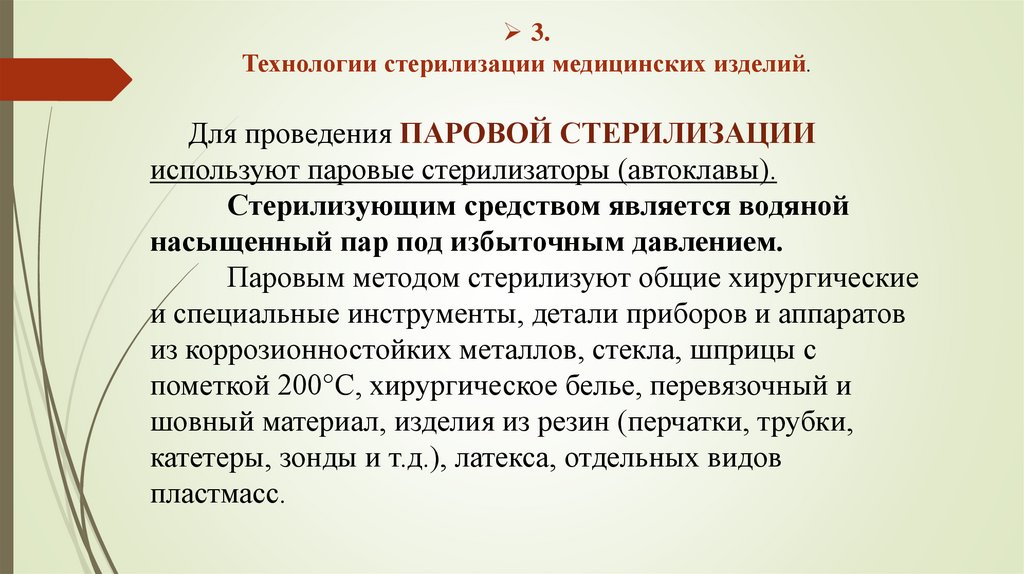3. Стерилизуемый агент (пар, горячий воздух) должен проникать в стерилизуемый
