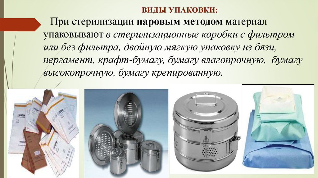 7. Перечислите виды упаковок для парового метода стерилизации.