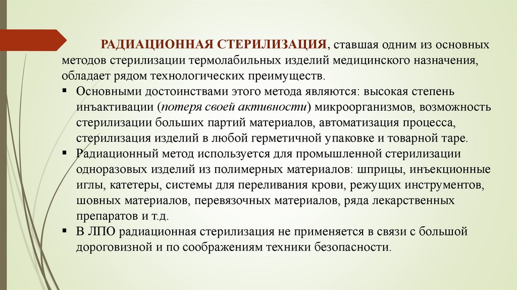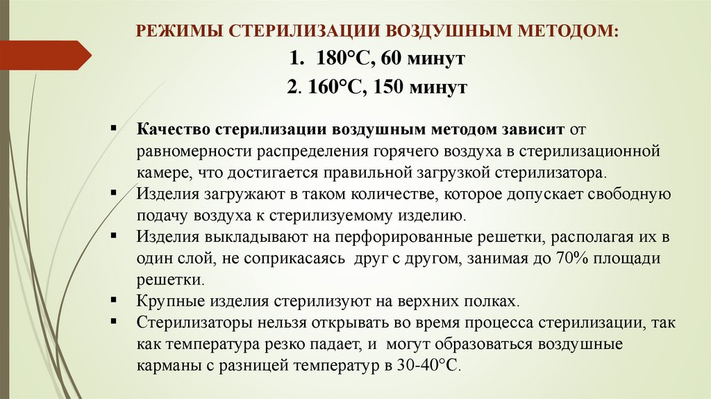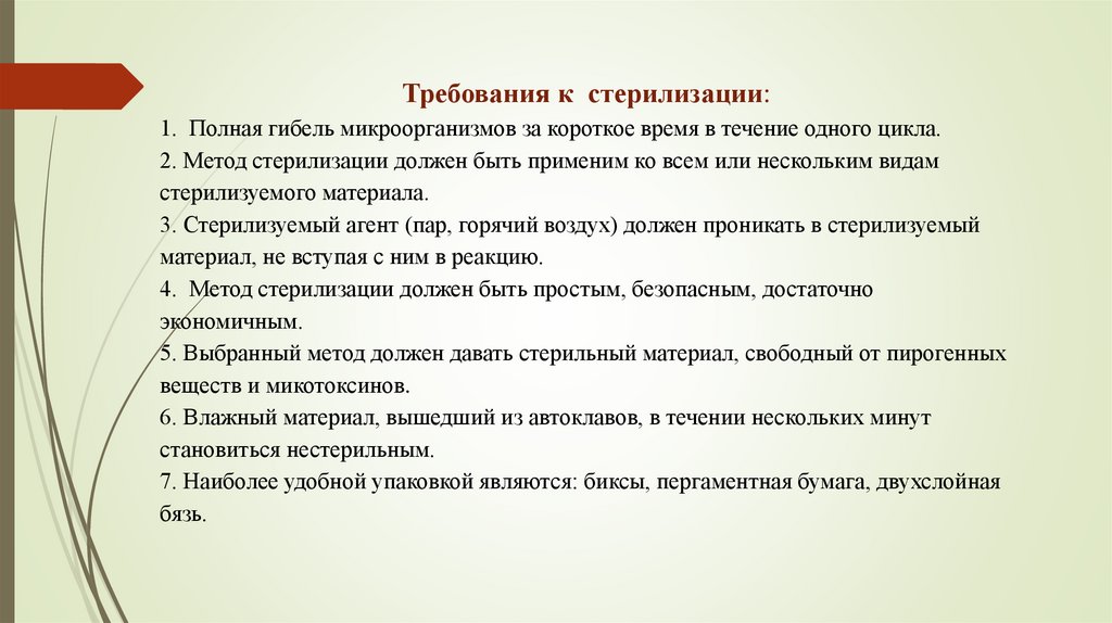 4. Метод стерилизации должен быть простым, безопасным, достаточно