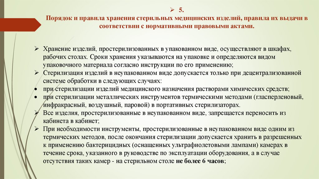5.Порядок и правила хранения стерильных медицинских изделий,