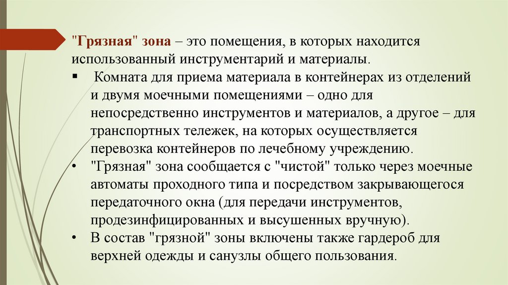 "Грязная" зона – это помещения, в которых находитсяиспользованный инструментарий и материалы.