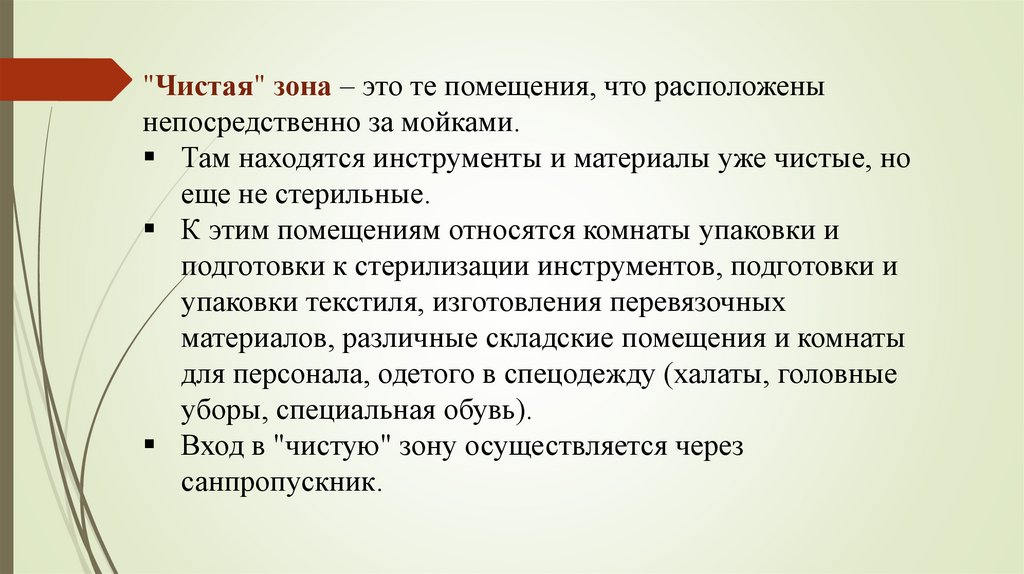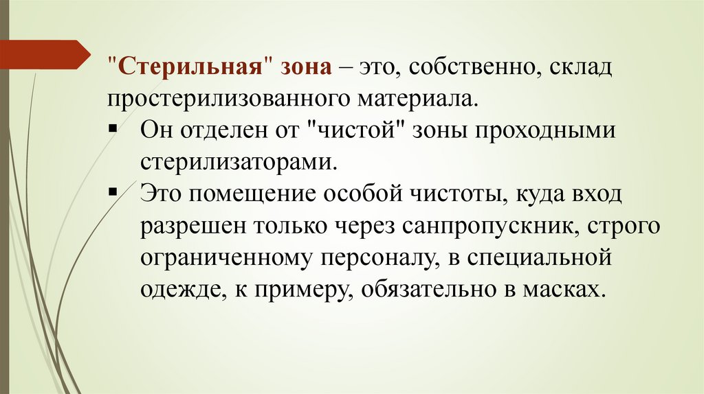 "Стерильная" зона – это, собственно, складпростерилизованного материала.